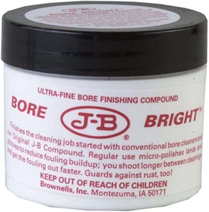 At the range, regular use of J-B Bore Bright between strings of fire minimizes the accumulation of jacket fouling to help maintain consistent accuracy. As a bore cleaner, the soft, oil-paste formula liquefies as you use it to quickly remove fouling, copper, lead, and powder residue in rifles and handguns, plus plastic deposits in shotgun bores. Because J-B Bore Bright is absolutely non-embedding it wipes easily from the barrel with a dry patch. You never need to worry about Bore Bright harming your barrel.