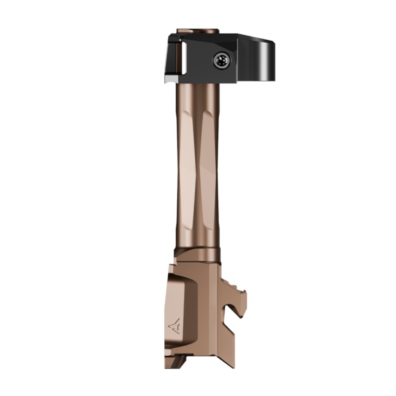 The AFTERBURNER™ compensator is machined from stainless steel and the RAMJET™ barrel from hardened 416R SS; both are enhanced with a Radianite™ coating. This combination achieves low friction, high hardness, and high corrosion resistance, making overall durability and erosion from muzzle blast a non-issue. Angled front faces on the AFTERBURNER